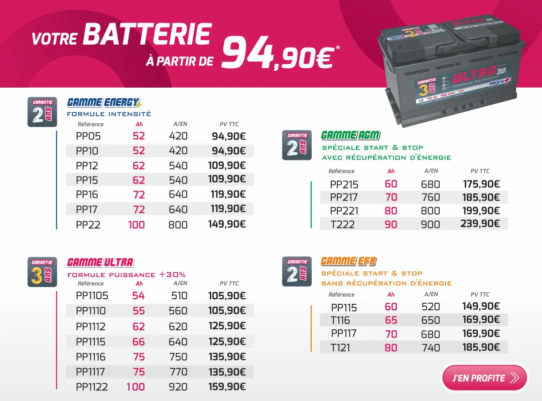 Optez pour les batteries des professionnels Profil+ et bénéficiez de produits conformes aux exigences constructeurs à prix attractifs !
