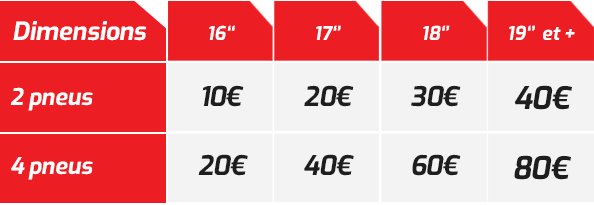 Montants du remboursement : Le bonus dépend de la taille de vos pneus et de la quantité achetée (voir le tableau ci-dessus).