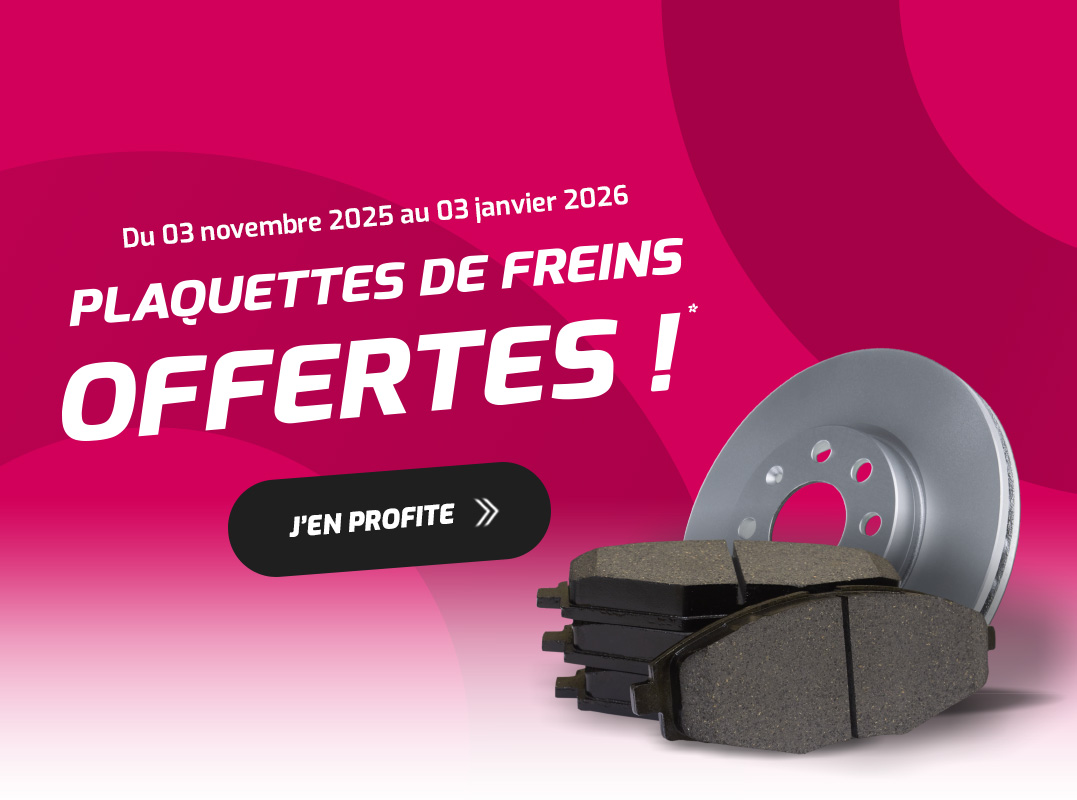 Pour l’achat d’un jeu de disques de frein, les plaquettes de freins sont offertes (hors pose).